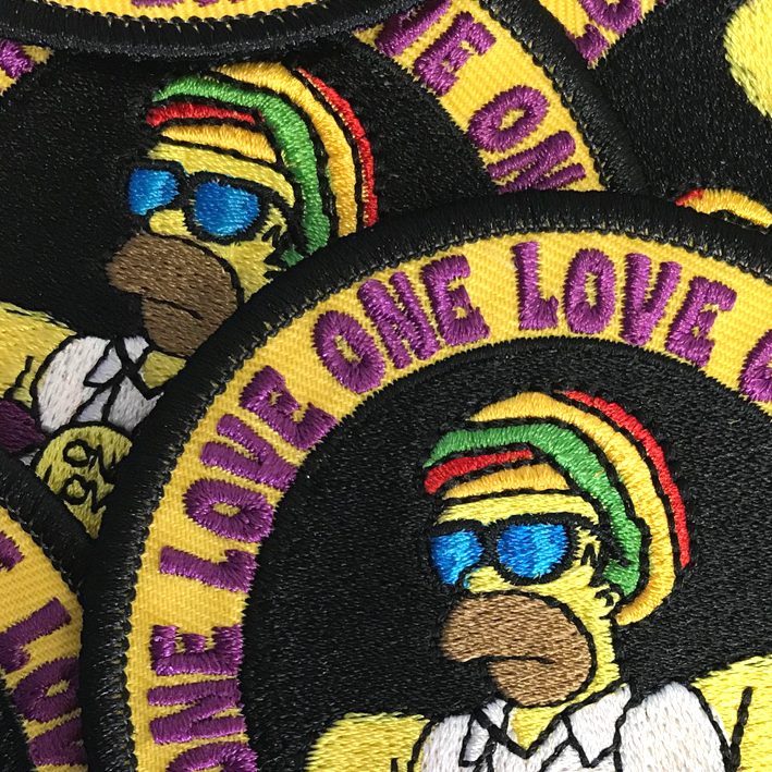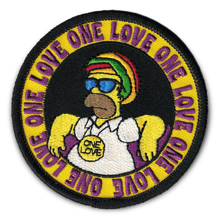 Homer's ONE LOVE patch comes with a free 'TOO COOL FOR THIS PLANET' patch. We do it for the karrrrma.
